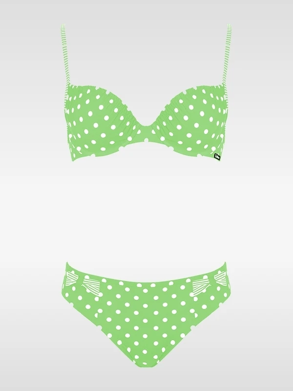 Die fröhliche Kombination von Micro-Streifen und süßen Tupfen ist ein Trendthema, bei dem Schleifen-Zierelemente die Eyecatcher sind. Logo-Patches, kontrastfarbene Bikiniverschlüsse oder Bügelbahnen setzen besondere Akzente.