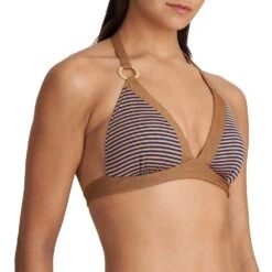 Wünschen Sie sich einen Bikini mit vorgeformten Cups, der Ihren Busen mehr bedeckt? Dann wird Sie der Charme dieses raffinierten Modells aus besonderem Strukturmaterial bestimmt betören. Die verspielten Ringe an den Trägern bilden das i-Tüpfelchen.