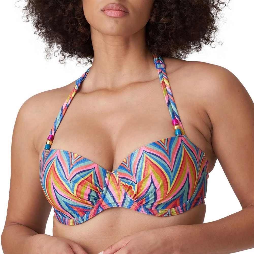 Topmodisches Bikini-Oberteil in Balconette-Optik mit gepolsterten Cups und mehrfarbigen Missoni-Streifen. Die Multiway-Träger können gerade oder als Neckholder-Modell getragen werden. Seventies-Glamour für den Strand!