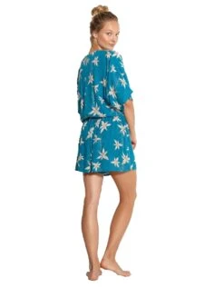 Die kurzen Ärmel bedecken elegant Ihre Schultern und Oberarme, während der tiefe V-Ausschnitt an Vorder- und Rückseite eine feminine Silhouette zaubert.