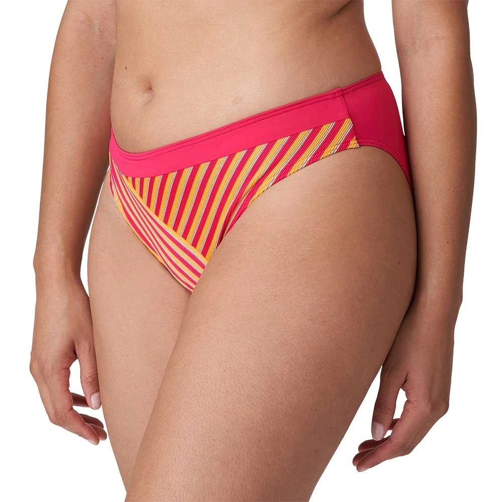 Stilvoller Bikinislip aus gestreiftem Material mit Linienstruktur. Der einfarbige Einsatz an der Taille wirkt wie ein eleganter Gürtel.