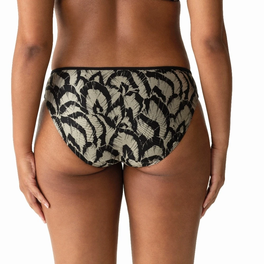 Rioslip aus schickem glänzendem Material mit angesagtem Wüstenmuster. Eine feine Paspel an der Taille sorgt für das gewisse Extra.