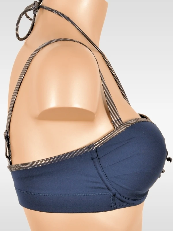 Neu: Bikini-Oberteil mit sexy Bandeau-Schnitt und unterlegten Cups Die dekorativen Nackenbändchen betonen die luxuriöse Optik und sind, genau wie die Träger, abnehmbar. Die Bändchen können auch um den Nacken getragen werden. Die geschmeidigen unterlegten Cups sind extra komfortabel und heben den Busen spürbar an.