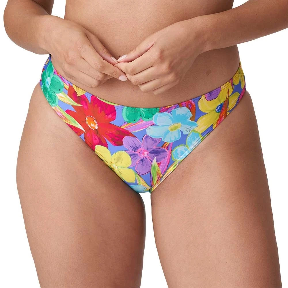 Angesagter Bikini-Rioslip mit übergroßem Blumenmuster in leuchtenden Farben.