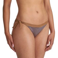 Bikini-Hose mit Spitzeneinsätzen, seitliche Bindebändchen und roten Perlen in Glasoptik. Dezentes, goldfarbenes Logo auf der Rückseite.
